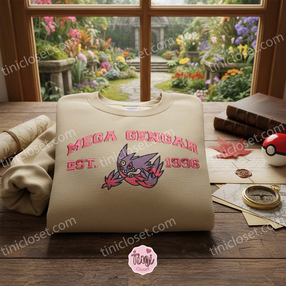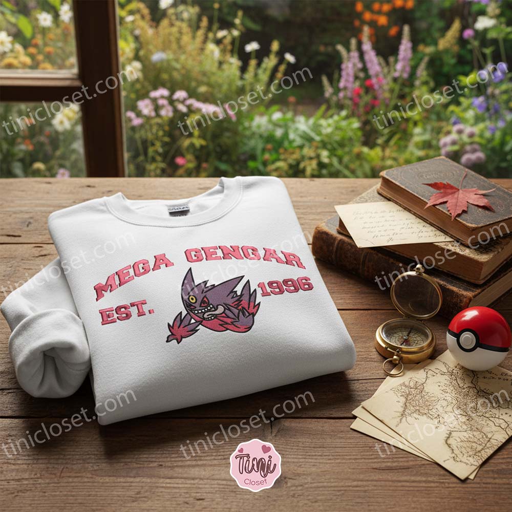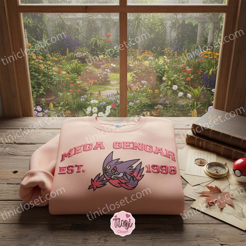 Don’t let this offer phase through you. The Mega Gengar Est 1996 Embroidered Sweatshirt combines nostalgia, high-end quality, and a clever romantic twist into one perfect package. Whether you are treating yourself to some new Ghost Pokemon Gear or sending a “Shadow Tag” of love across the miles, this pullover is super effective.