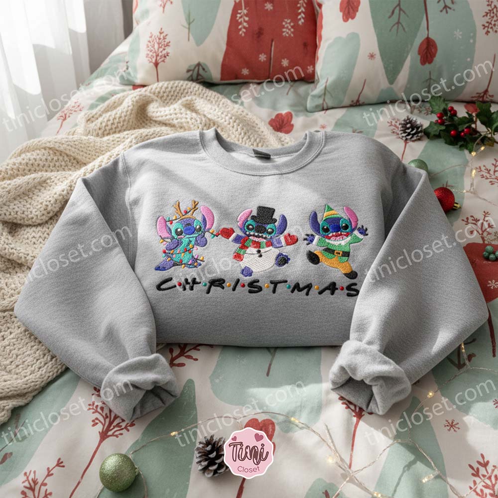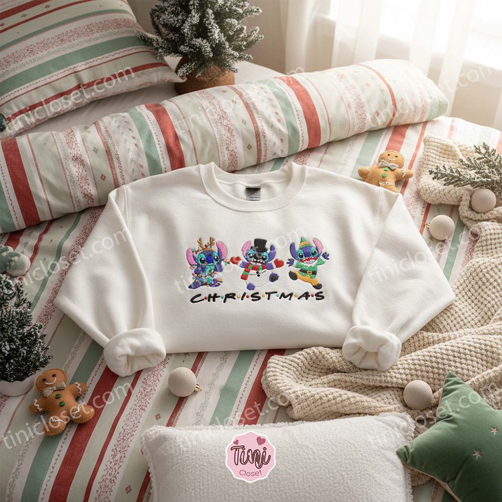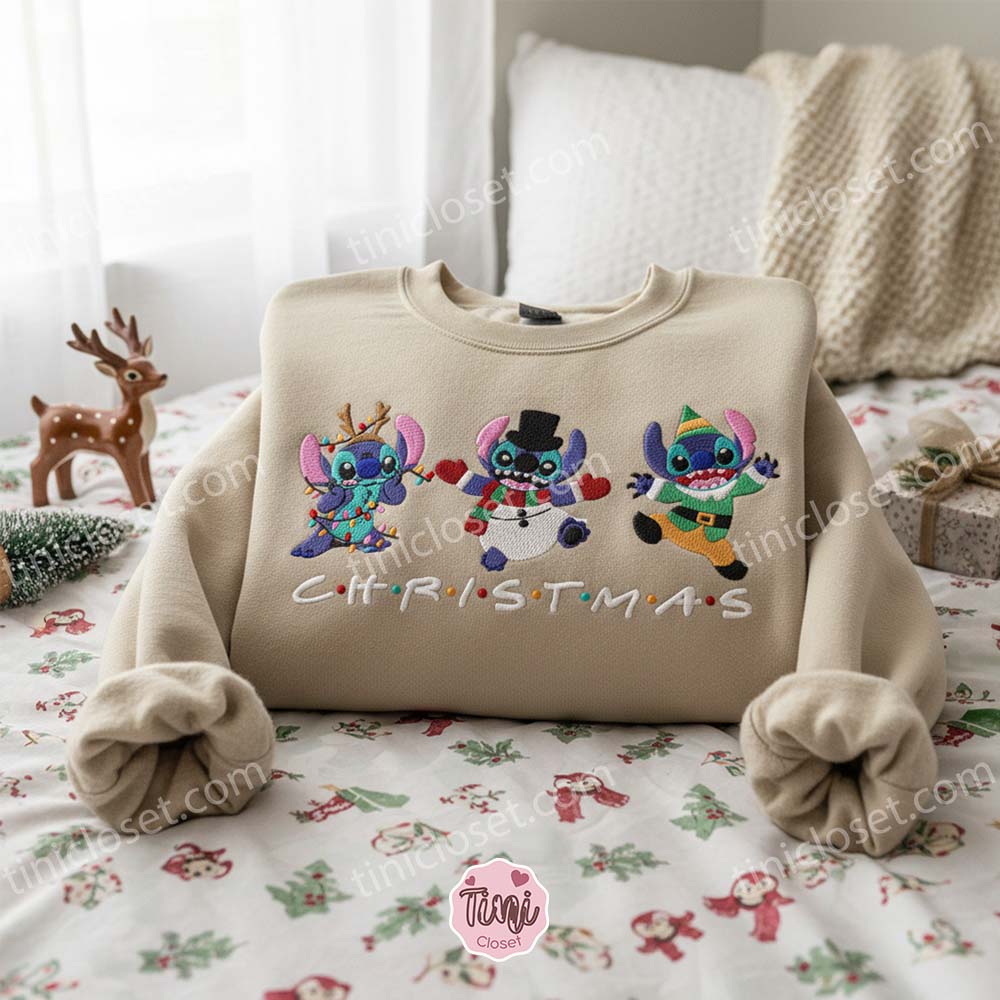 If you are looking for a Custom Stitch Christmas Snowman Reindeer Elf Hoodie that screams “Holiday Spirit,” this is the masterpiece you need. It captures the frantic fun of the holidays, the joy of dressing up, and the undeniable cuteness of Disney’s most beloved troublemaker. It is a standout piece of Christmas Apparel that guarantees you’ll be the life of the ugly sweater party (even though this sweater is far from ugly).