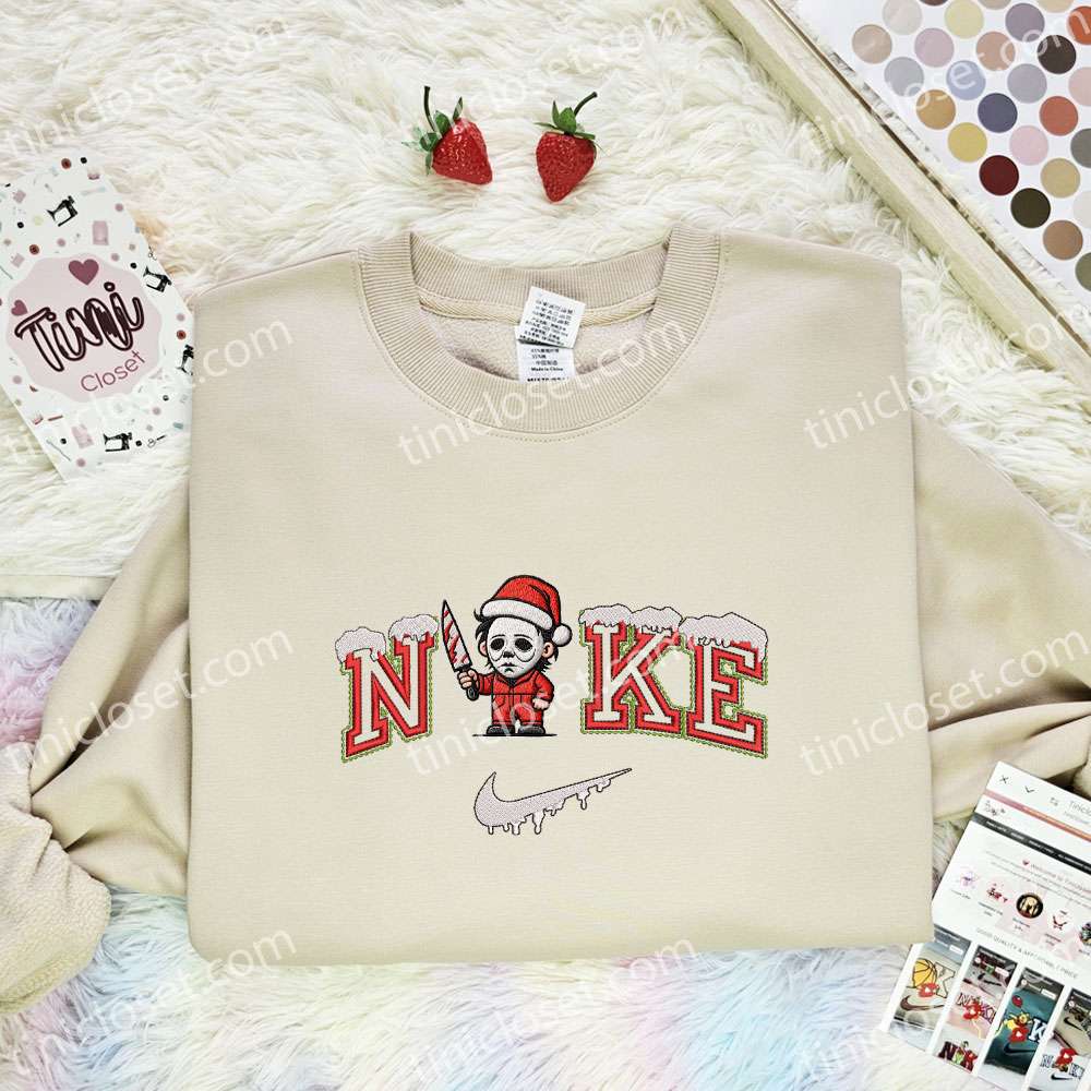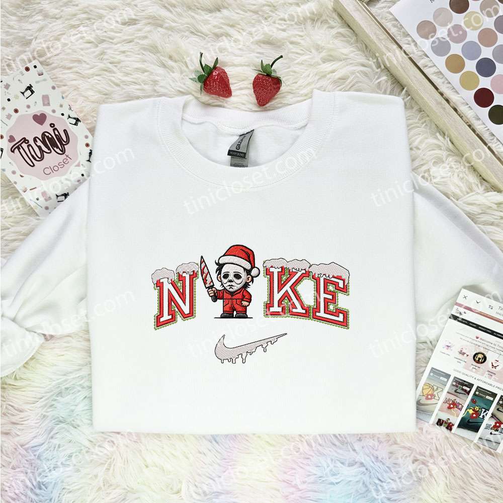 Michael Myers Xmas Embroidered Shirt, Halloween Embroidered Hoodie, Christmas Embroidered T-Shirt
