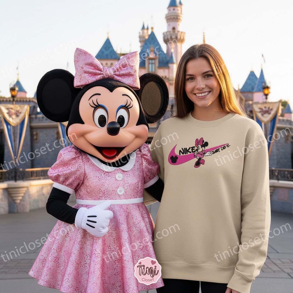 In a world of fast fashion and screen-printed graphics that peel after a few washes, our collection stands apart through quality craftsmanship. This isn’t just a decal; it is a fully Minnie Mouse Just Do It Embroidered Sweatshirt. We use high-tensile, vibrant threads to stitch the design directly into the fabric.