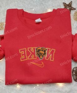 Nike x Chicago Bears Embroidered T-shirt, NFL Sports Embroidered T-shirt, Custom Nike Embroidered T-shirt