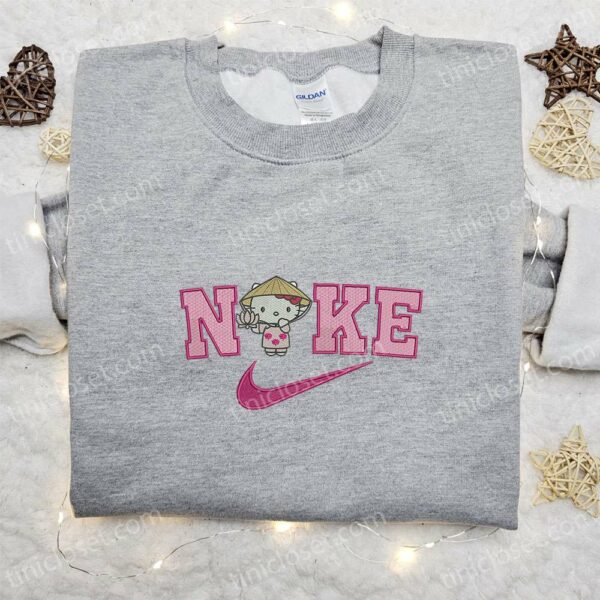 Nike x Hello Kitty Farmer Embroidered Shirt, Nike Inspired Embroidered Shirt, Cute Embroidered Shirt