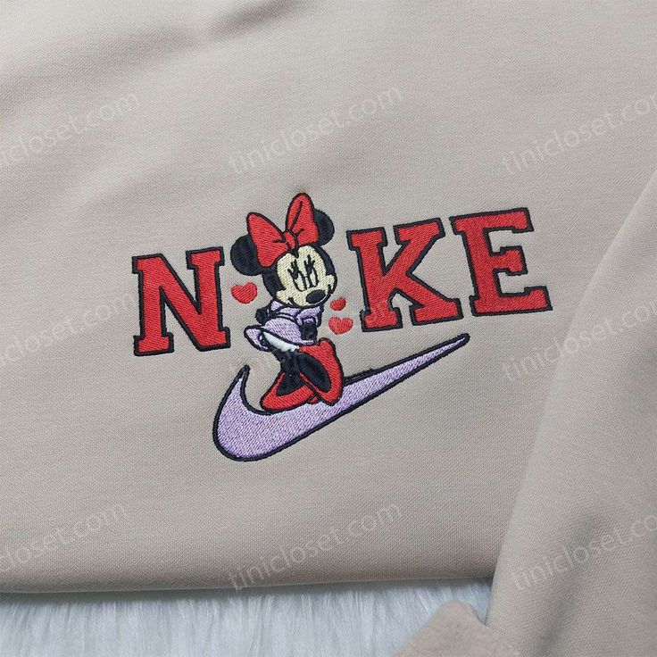 Welcome to Tinicloset, where we sprinkle a little extra magic onto your wardrobe with our enchanting collection of custom embroidered apparel. Our clothing store is a treasure trove of cuteness, featuring not only custom embroidered shirts but also a delightful array of embroidered sweatshirts, t-shirts, and hoodies. At the heart of our collection lies the whimsical Nike x Minnie Love Hearts embroidered shirt, a darling piece that perfectly captures the adorable essence of Minnie Mouse being in love, making it the ultimate embodiment of all things cute and sweet.