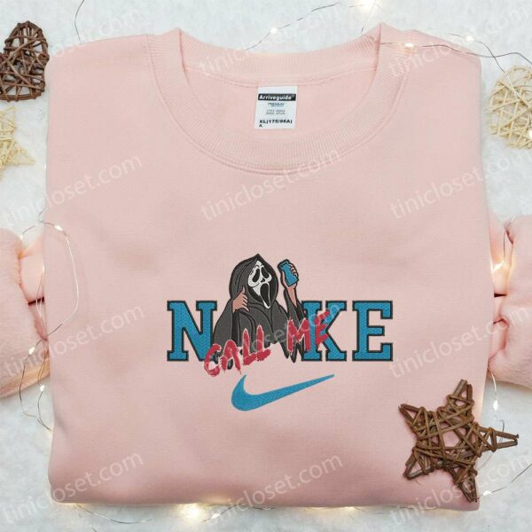 Nike x Scream Call Me Halloween Ghost Embroidered Shirt, Nike Inspired Embroidered Shirt, Spooky Embroidered Shirt