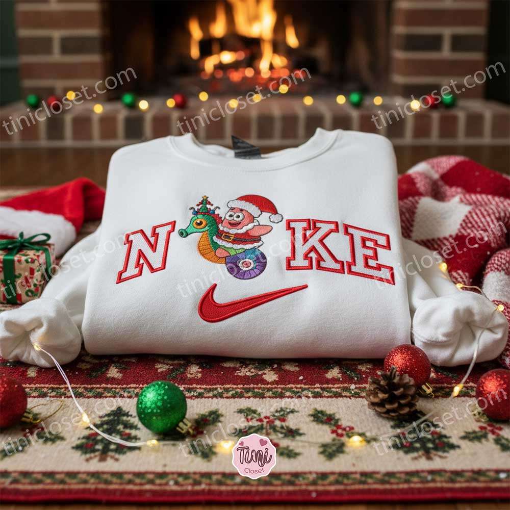 Patrick Star Xmas Embroidered Shirt, Cartoon Embroidered Hoodie, Best Christmas Gift