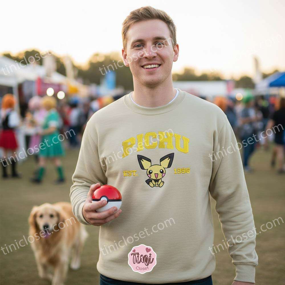 The Dynamic Duo: Grab a Pichu sweatshirt for yourself and a Pikachu version for your best friend. It’s a subtle and stylish way to coordinate outfits without wearing the exact same print.