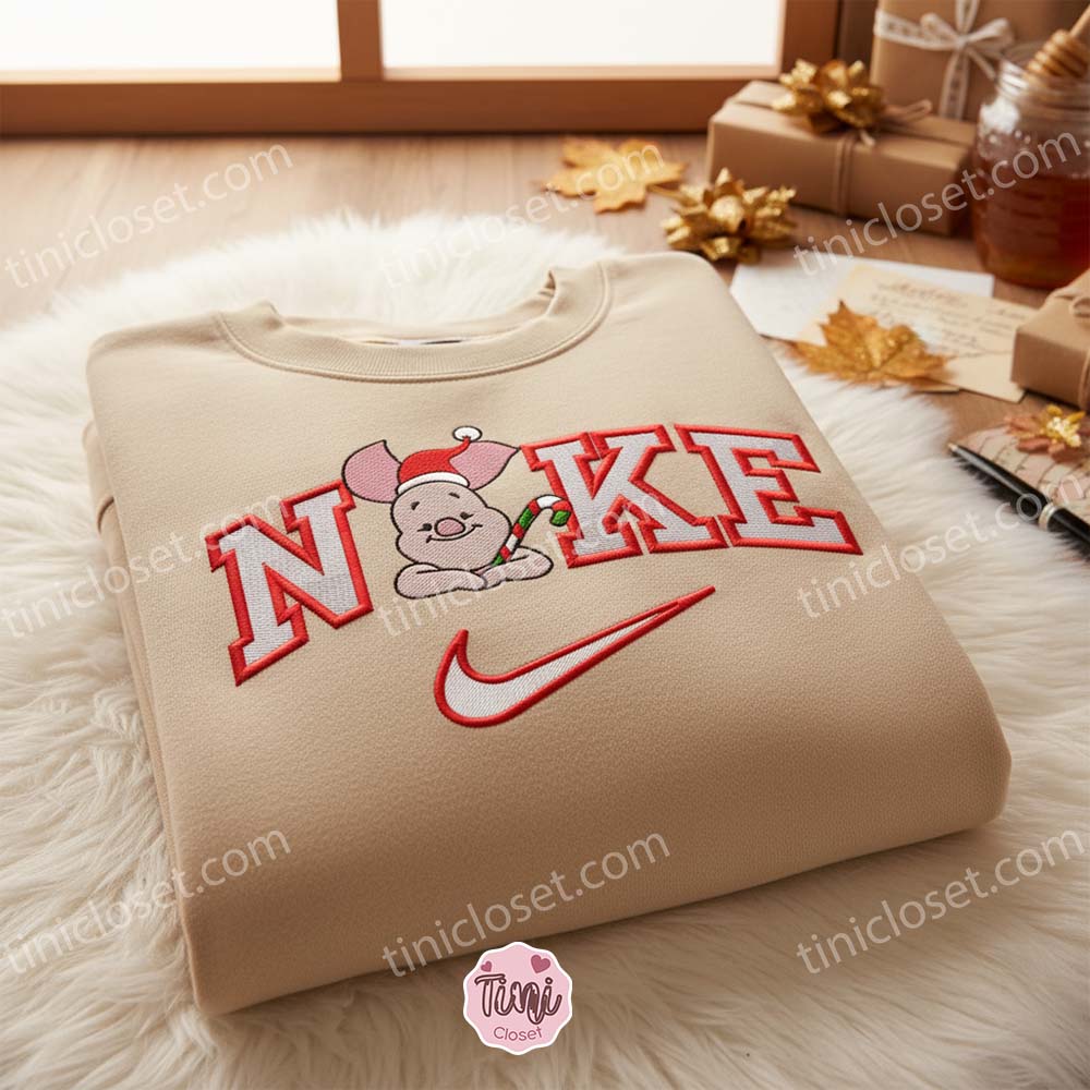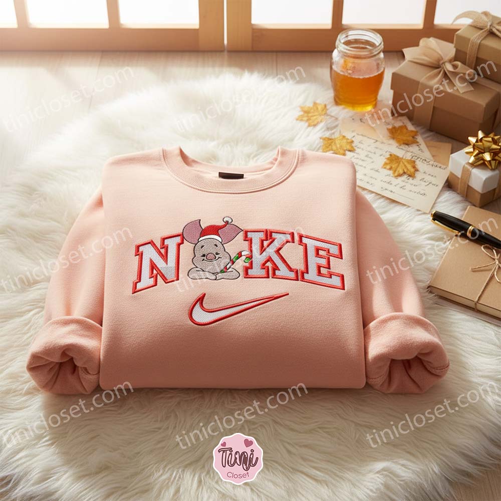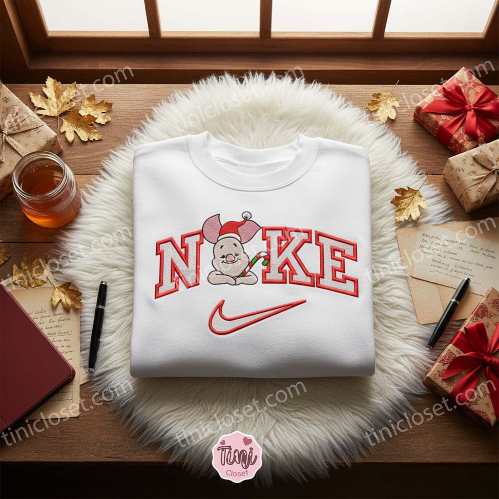 Welcome to Tinicloset, where fashion meets personal expression and style is synonymous with individuality. Our store is a haven for those who appreciate the art of custom embroidery, offering a diverse selection of embroidered apparel, including shirts, sweatshirts, T-shirts, and hoodies. Today, we invite you to immerse yourself in our world, as we introduce you to our key products, each designed to capture your heart and elevate your wardrobe: the Nike x Piglet Candy Cane Christmas embroidered shirt, the Winnie The Pooh embroidered shirt, the Disney embroidered hoodie, and the Christmas embroidered T-shirt. Picture Piglet, adorned in the cutest Christmas costume, and let your anticipation for these delightful garments soar.