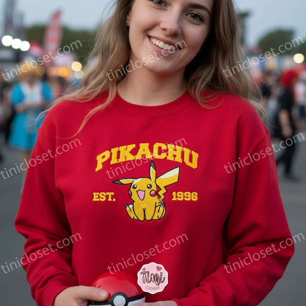 The “Est. 1996” Heritage: Pikachu has been capturing hearts since the very beginning. The “Est. 1996” text on the chest honors the debut year of the global Pokemon franchise. It grounds the design in history, appealing to fans who have been there since Pokemon Red & Blue on the Game Boy.
