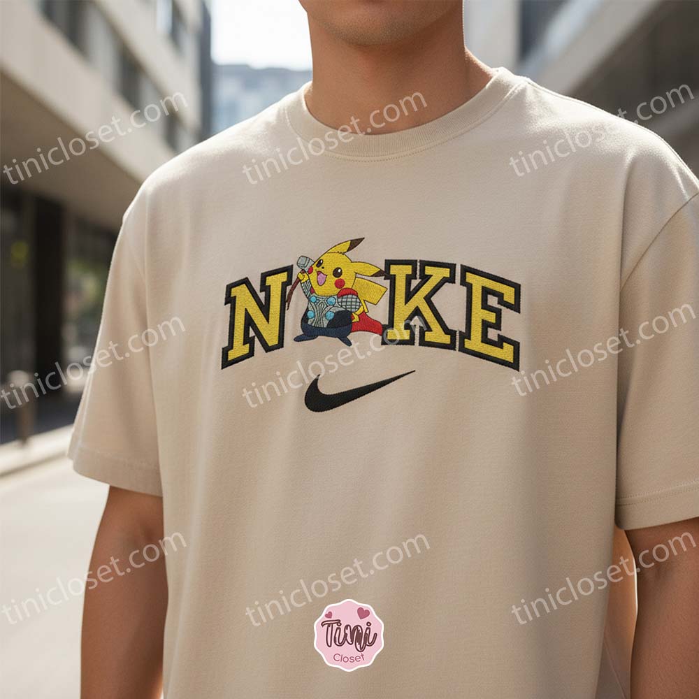 What happens when you combine the most iconic Electric-type Pokémon with the mighty God of Thunder? You get the ultimate crossover event for your wardrobe. Welcome to Tinicloset, where we specialize in high-quality custom embroidery that brings your favorite fandoms together. Our Pikachu God of Thunder Embroidered Shirt is a hilarious and epic mashup that proves you don’t need to be an Asgardian giant to be worthy—sometimes, you just need to be a cute, yellow electric mouse.