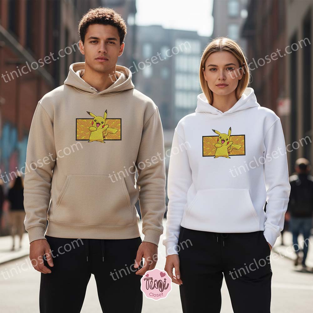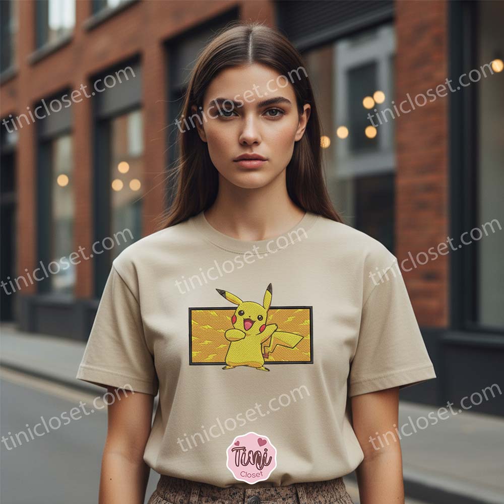 Pikachu Thunder Shock Embroidered T-Shirt & Sweatshirt, Pokemon Lover Top, Bestie Matching Crewneck
