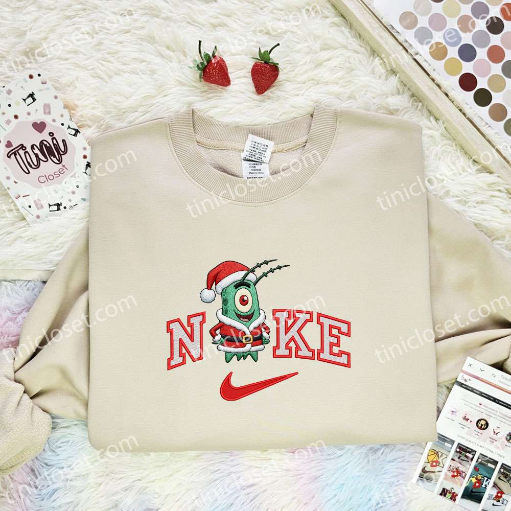 Plankton Xmas Embroidered Shirt, Spongebob Cartoon Embroidered Hoodie, Best Christmas Gift