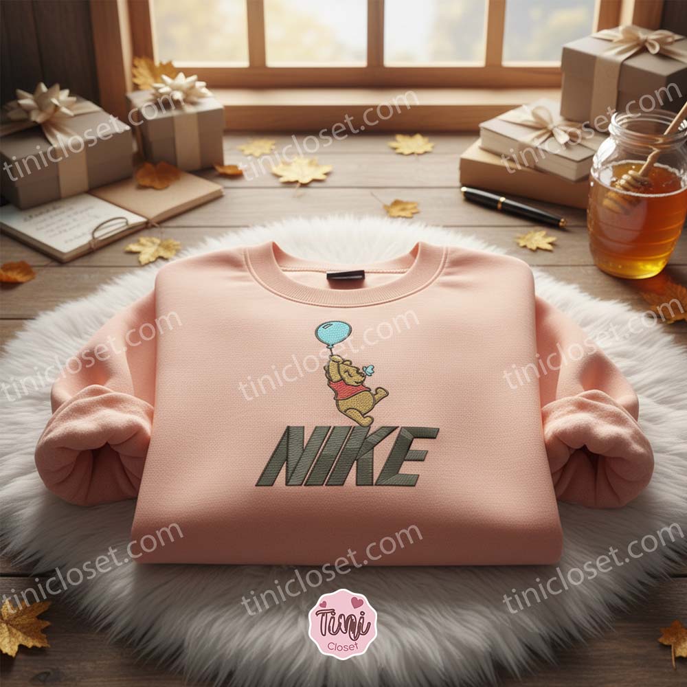 Pooh Bear Floating With Balloon Embroidered Sweatshirt | Bestie Matching Disney Top & Galentine Gift