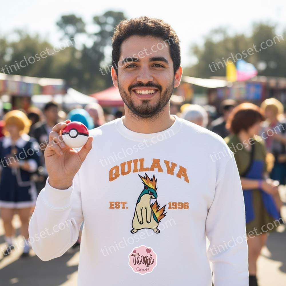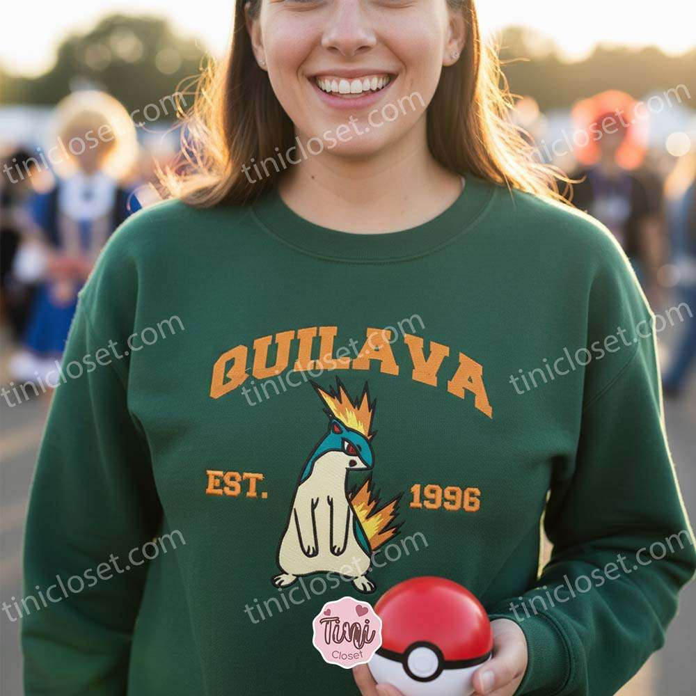 For many trainers who began their journey in Pokemon Gold & Silver, the moment their adorable Cyndaquil evolved was a game-changer. Suddenly, the shy Fire Mouse became the fierce, battle-ready Quilava, sporting a mohawk of flames and a sleek, aerodynamic design. As the bridge between the cute starter and the explosive Typhlosion, Quilava holds a special place in the hearts of Gen 2 fans as one of the best-designed middle evolutions in history. Our exclusively designed Quilava Embroidered Sweatshirt captures this fiery spirit, blending the nostalgia of the Johto region with a crisp, modern collegiate aesthetic.
