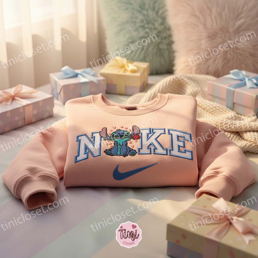 For Couples: This design shines in our Couple Gifts category. Imagine wearing matching crewnecks—maybe one has Stitch offering the rose, and the other has Angel accepting it (check our shop for Angel designs!). It’s a narrative on your shirt.