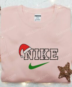 Santa Hat x Nike Embroidered Shirt, Christmas Embroidered Hoodie, Nike Inspired Embroidered Sweatshirt