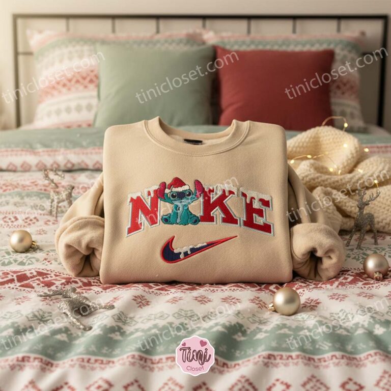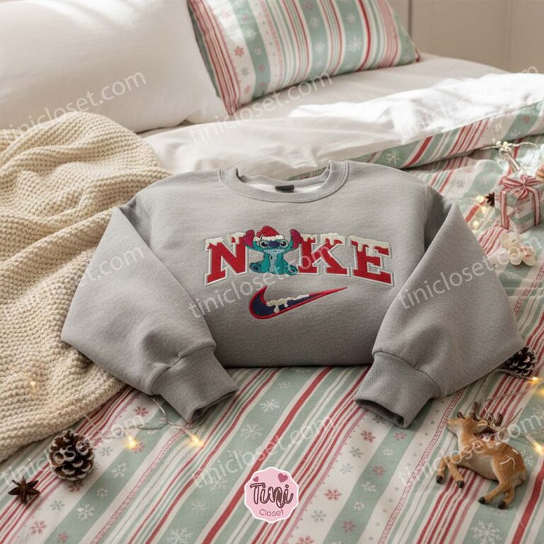 If you are looking for a way to celebrate “Stitchmas” that balances festive cheer with high-end style, this Falling Snowflakes Stitchmas Sweatshirt is the ultimate choice. It captures a magical moment: Stitch, donning a fluffy red Santa hat, looking up in wonder as delicate snowflakes fall around him. It is cozy, it is cute, and it is the perfect way to freeze the moment and enjoy the holidays.