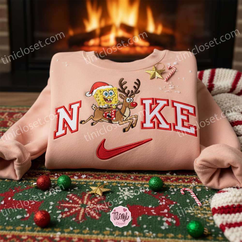Spongebob Squarepants Xmas Embroidered Shirt, Cartoon Embroidered Hoodie, Best Christmas Gift
