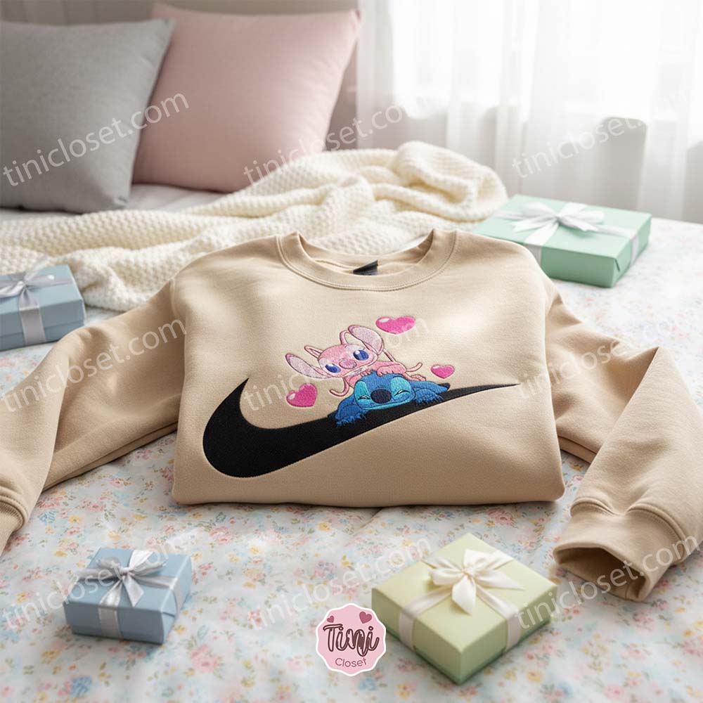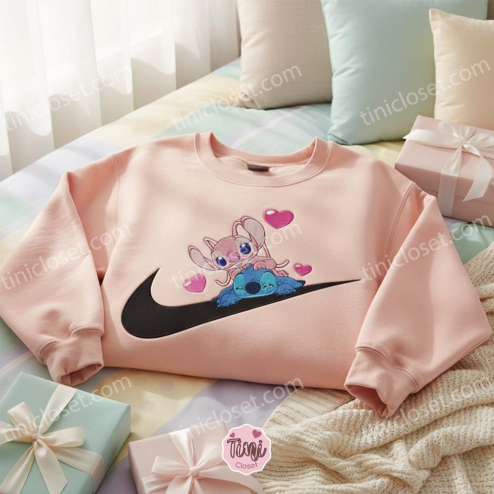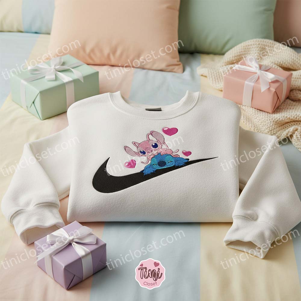 “Just do it… for love!” This season, the hottest trend in custom embroidery has collided with the galaxy’s favorite couple. If you have been scrolling through TikTok or Pinterest looking for that perfect blend of sporty aesthetic and Disney romance, your search ends here. Introducing the Stitch and Angel Swoosh Heart Embroidered Hoodie, the ultimate matching set for couples who want to look fresh, fashionable, and undeniably in love.