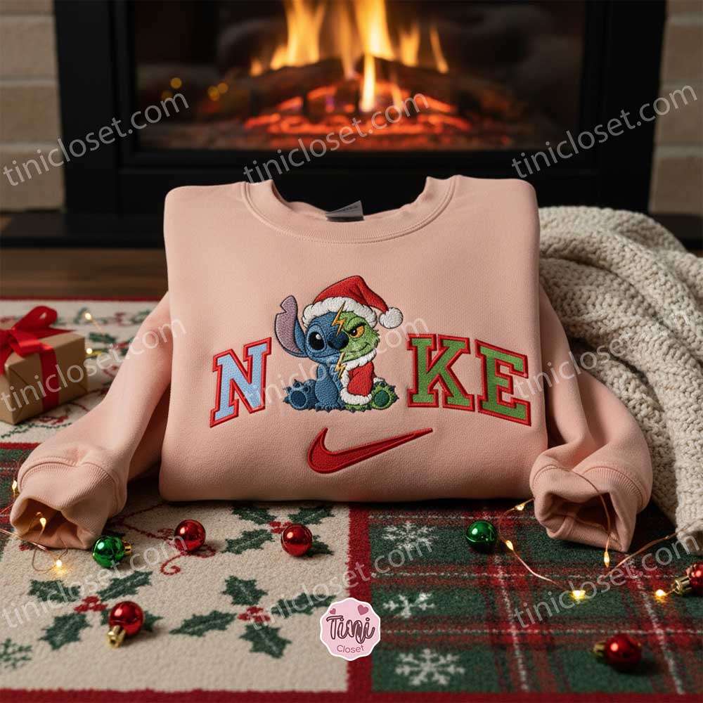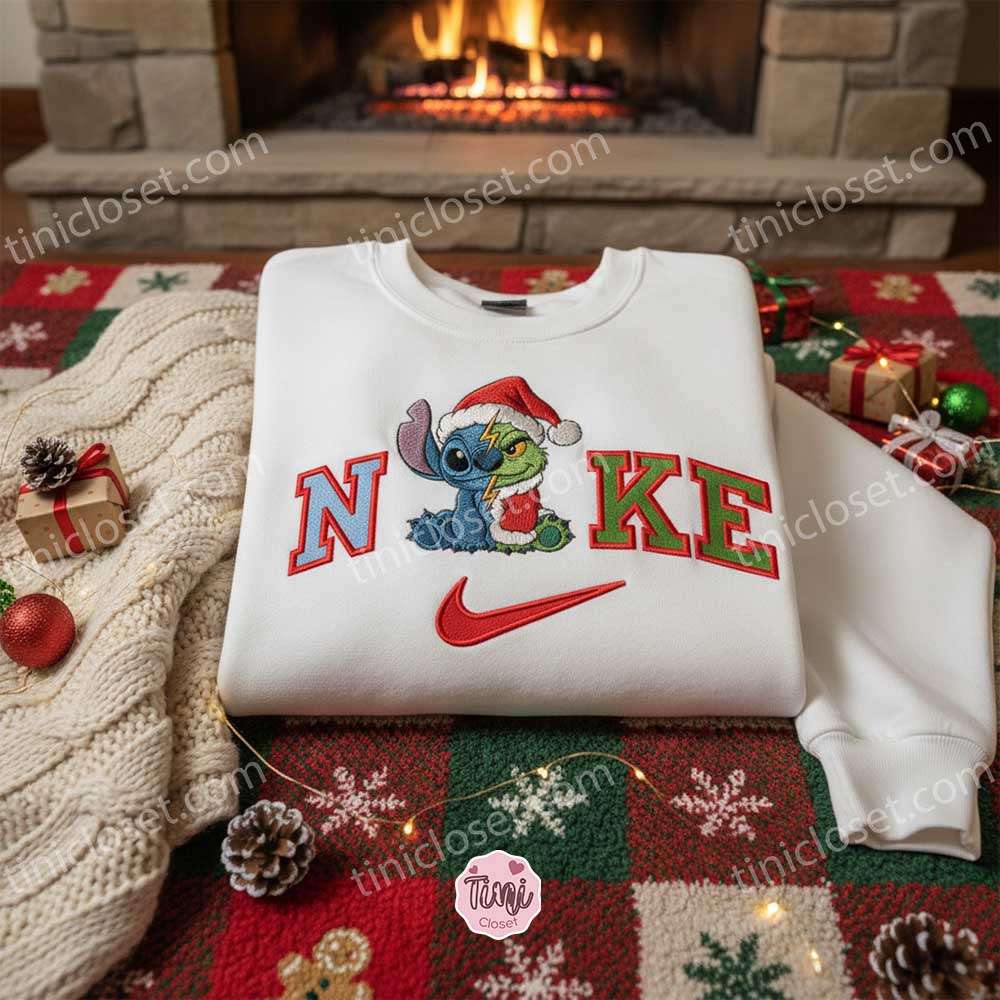 Stitch And Grinch Xmas Embroidered Shirt, Cartoon Embroidered Hoodie, Best Christmas Gift