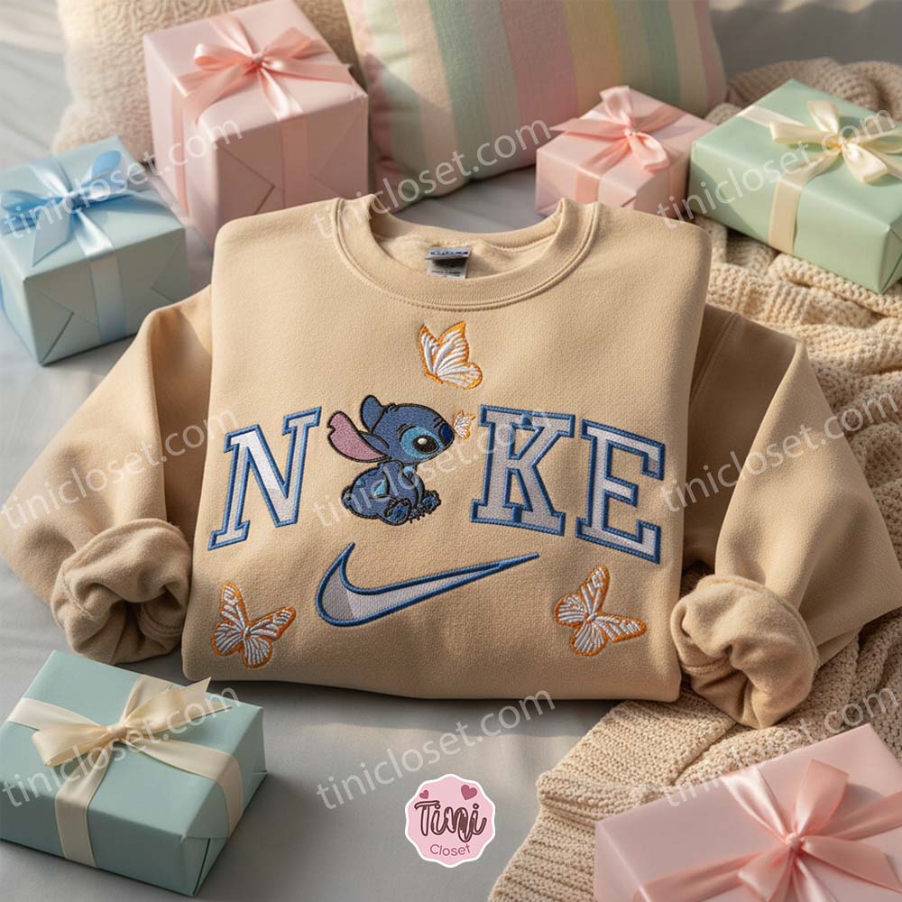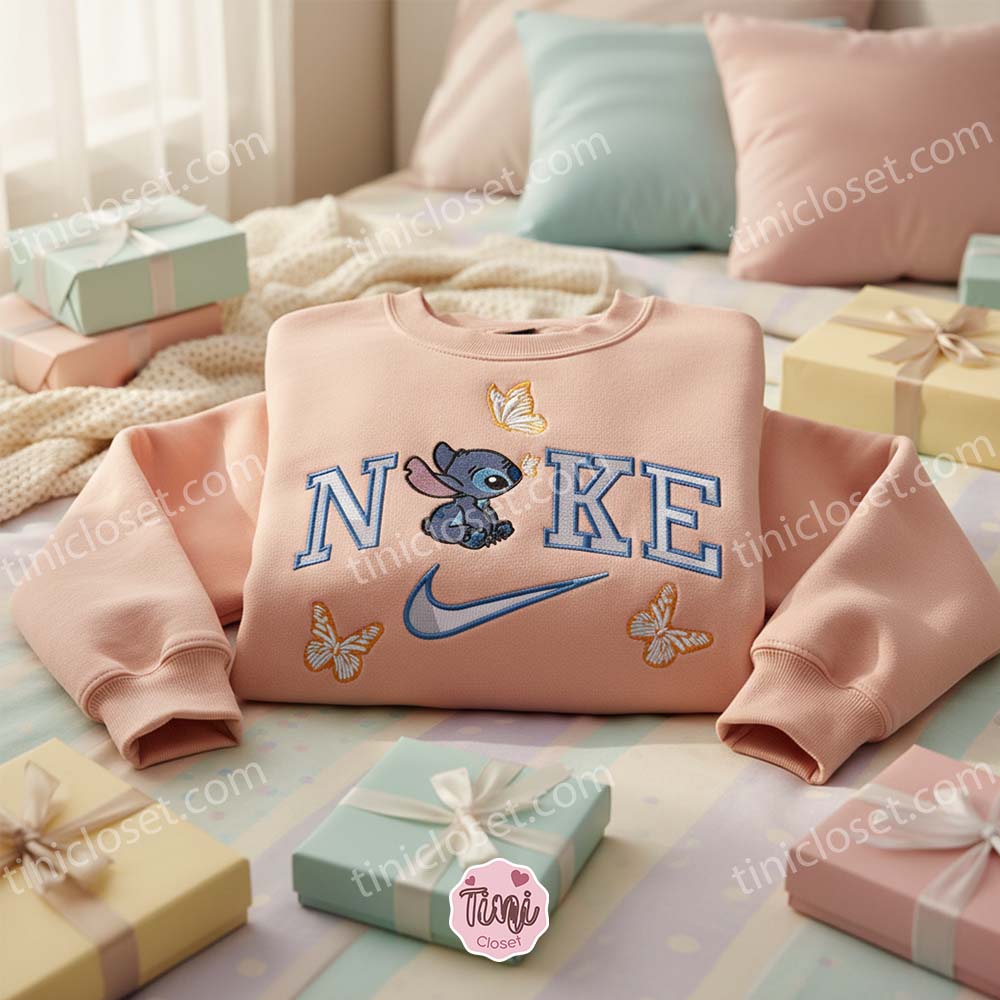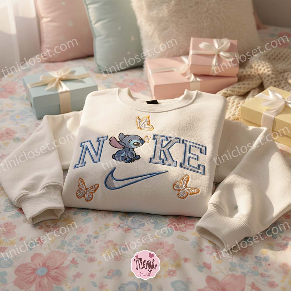 “Even the Wildest Experiments Have a Soft Spot.” – Stitch Butterfly Embroidered Sweatshirt