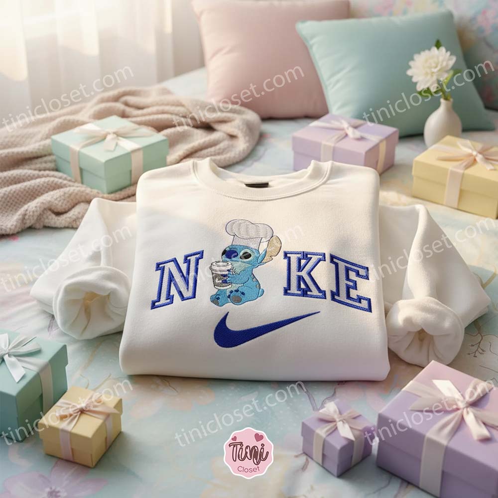 The Barista Vibe: For the coffee lovers, the “Barista Stitch” variation often features him with an apron and a latte. It’s the perfect attire for your morning coffee run or for wearing behind the counter at your local cafe.