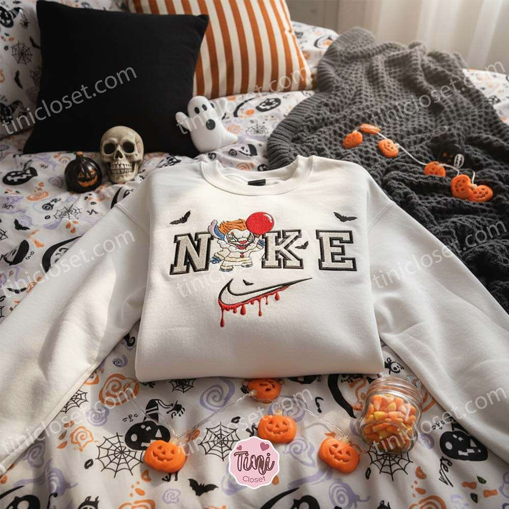 If you are hunting for a Halloween IT Movie Sweatshirt that balances “creepy” and “cute” perfectly, this is your red balloon. We have reimagined Stitch donning the iconic Victorian clown ruffles, the cracked face paint, and holding the signature red balloon. It is a Scary Clown Disney Holiday Crewneck that proves even the scariest monsters just want to be part of the family (even if they do have sharp teeth).