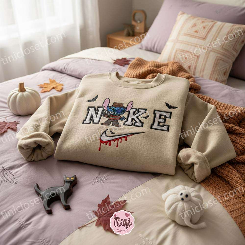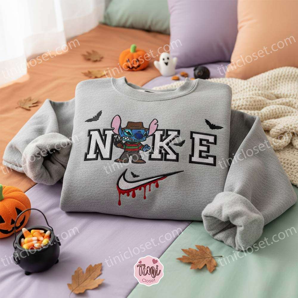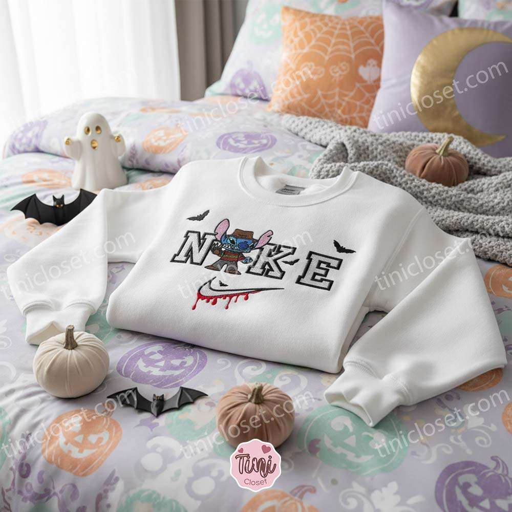 The Ultimate Horror-Streetwear Crossover: Stitch Freddy Krueger Drip Swoosh Halloween Embroidered Hoodie