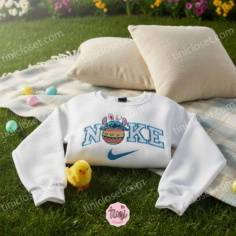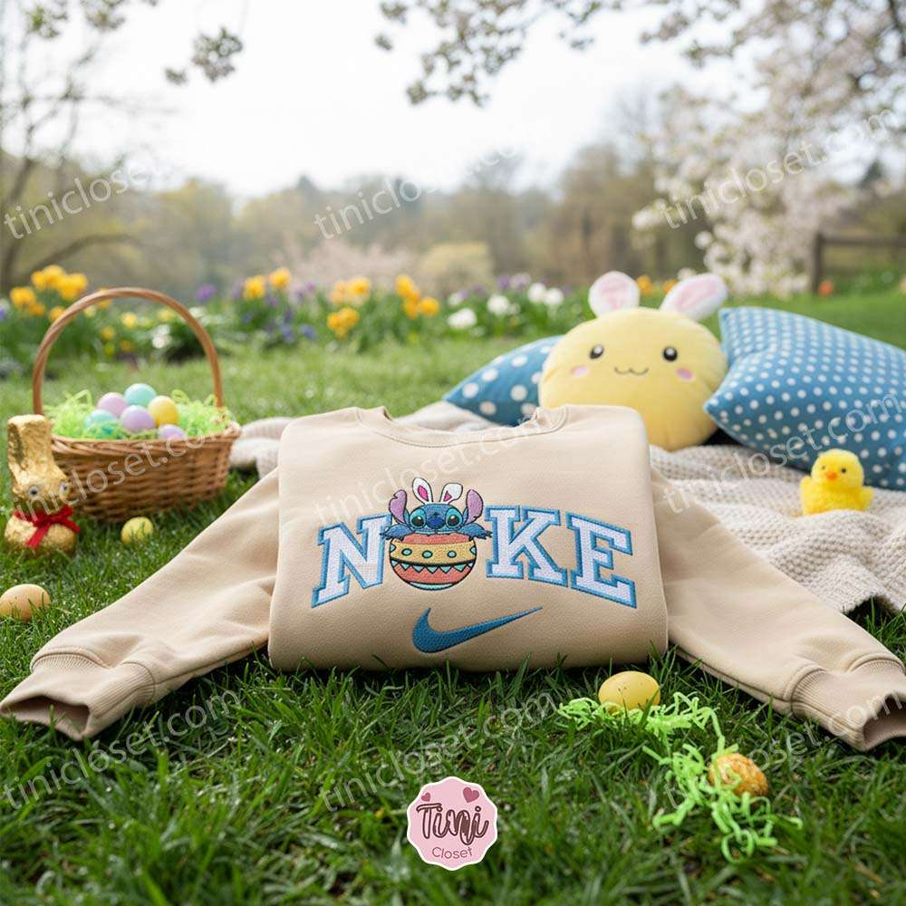 Stitch Hatching from Easter Egg Embroidered Sweatshirt, Custom Spring Stitchmas Hoodie, Surprise Bunny Ohana Holiday Shirt, Gift for Him Her (1)