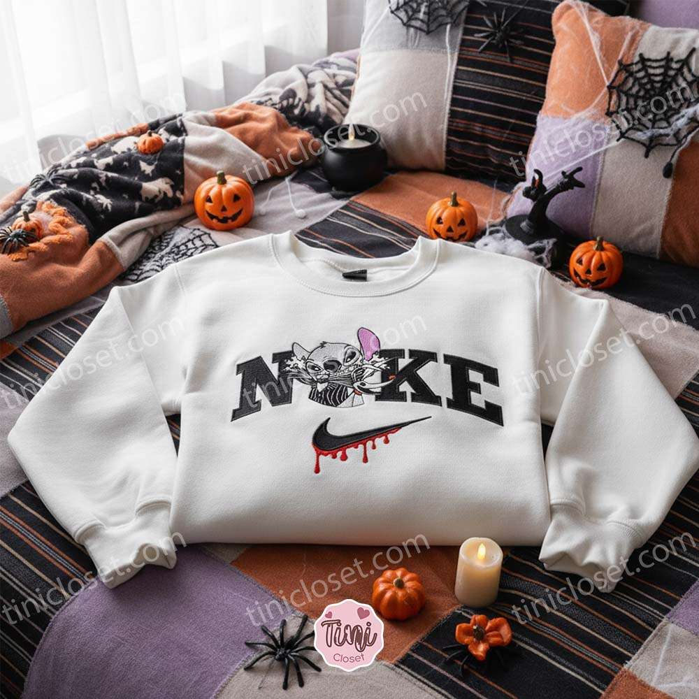 The Vibe: It’s “Spooky-Sweet.” It captures the whimsical, slightly dark aesthetic of The Nightmare Before Christmas but softens it with Stitch’s rounded, fluffy cuteness. It’s perfect for fans who want to celebrate both Halloween and Christmas with one shirt.