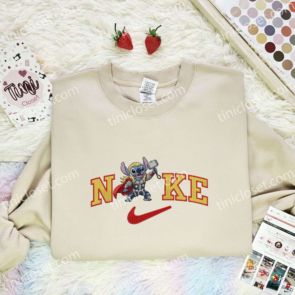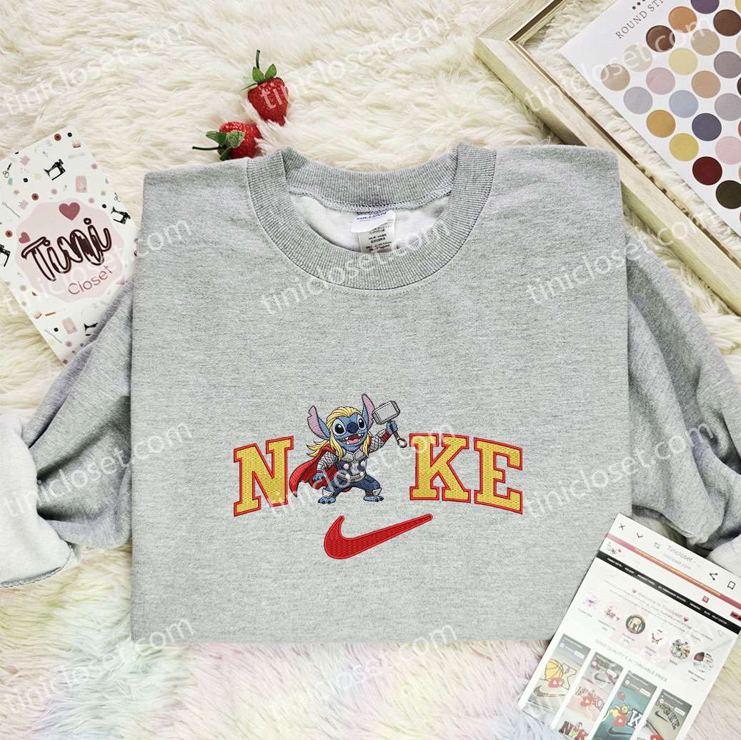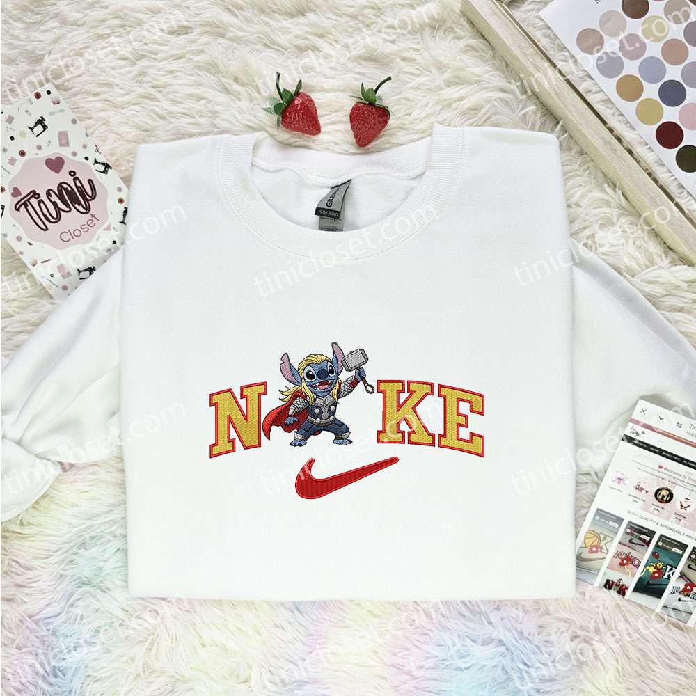 Stitch Thor Embroidered Shirt, Movie Embroidered Hoodie, Disney Characters Embroidered T-Shirt
