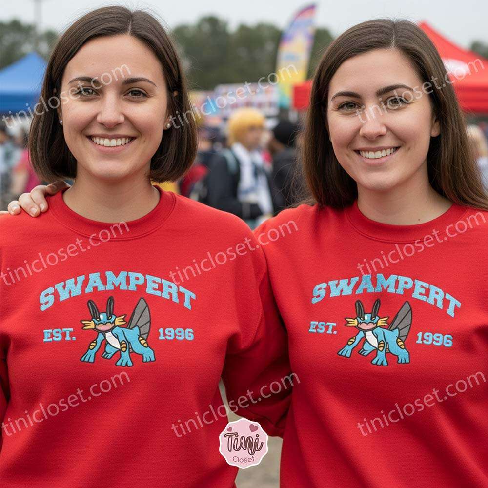 Swampert fans are loyal. They know the value of a Pokemon that can take a hit and keep fighting. Gifting this Swampert Embroidered Sweatshirt shows you understand their playstyle. It is the ideal gift for: