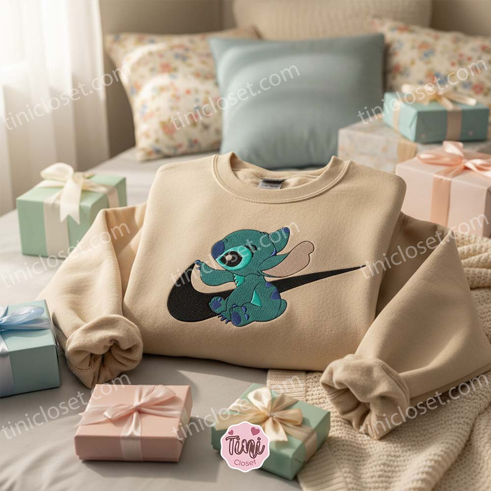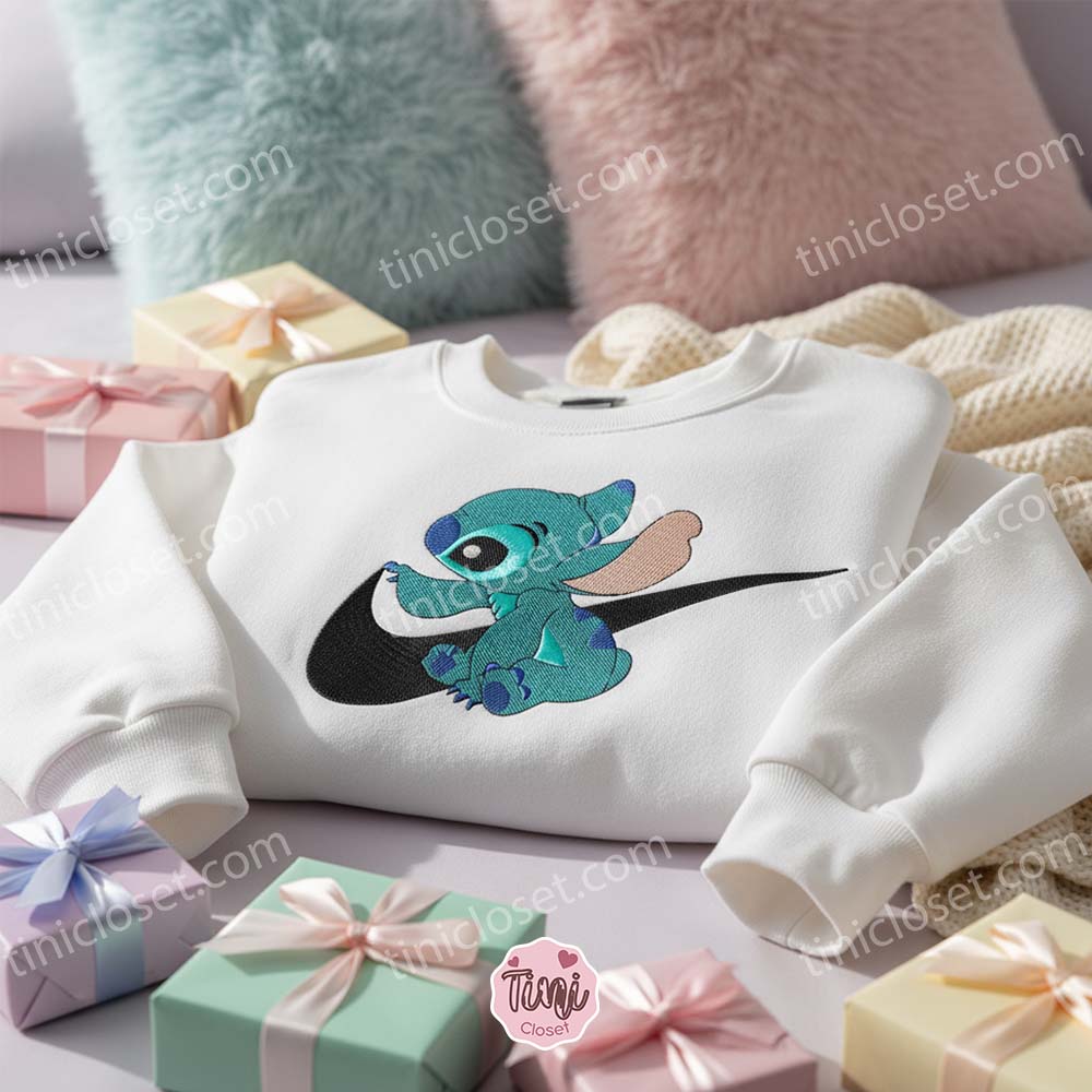 “Meega nala… Swoosh!” What happens when you combine the world’s most recognizable athletic logo with the galaxy’s most lovable experiment? You get the ultimate wardrobe essential. Introducing the Swoosh Stitch Embroidered Sweatshirt, a design that seamlessly blends the cool factor of modern streetwear with the heartwarming nostalgia of Lilo & Stitch.