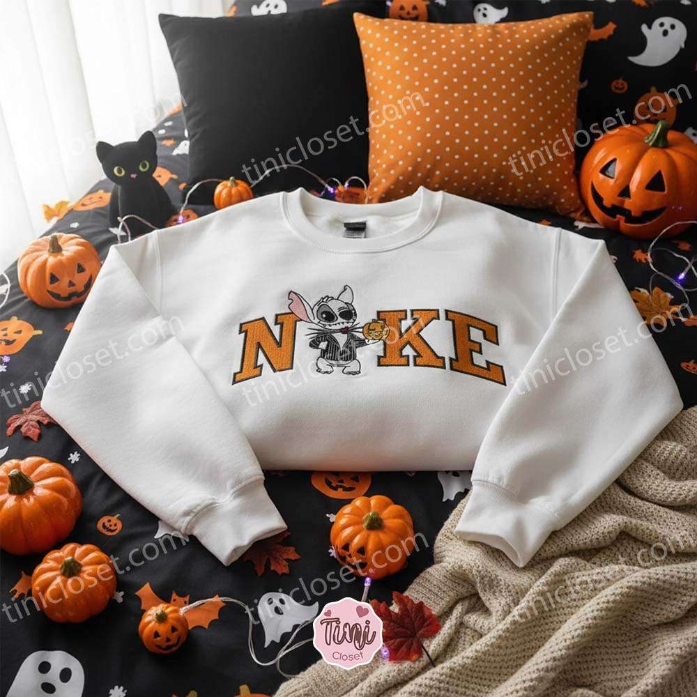 The Nightmare Before Stitchmas Embroidered Hoodie, Stitch Cosplay Jack Skellington Sweatshirt, Spooky Halloween Apparel, Gift for Him Her (1)