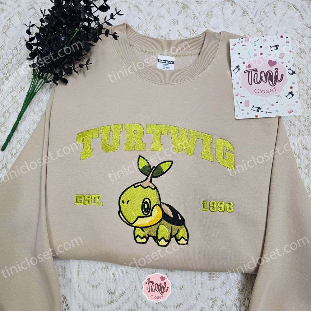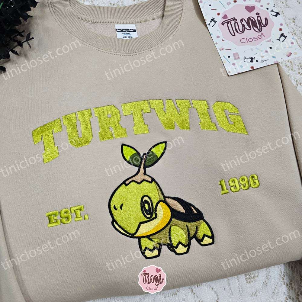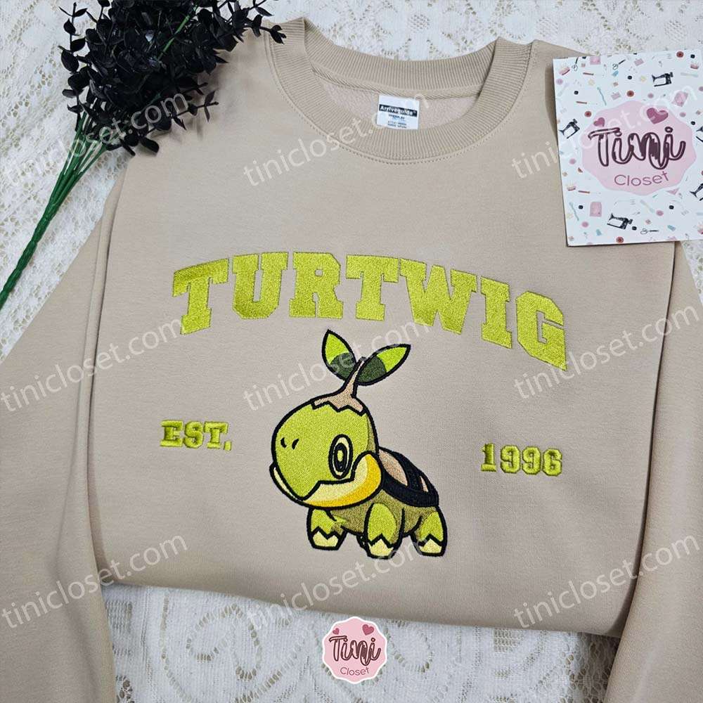 Turtwig Est 1996 Embroidered Shirt, Pokemon Embroidered Hoodie, Anime Embroidered Sweatshirt