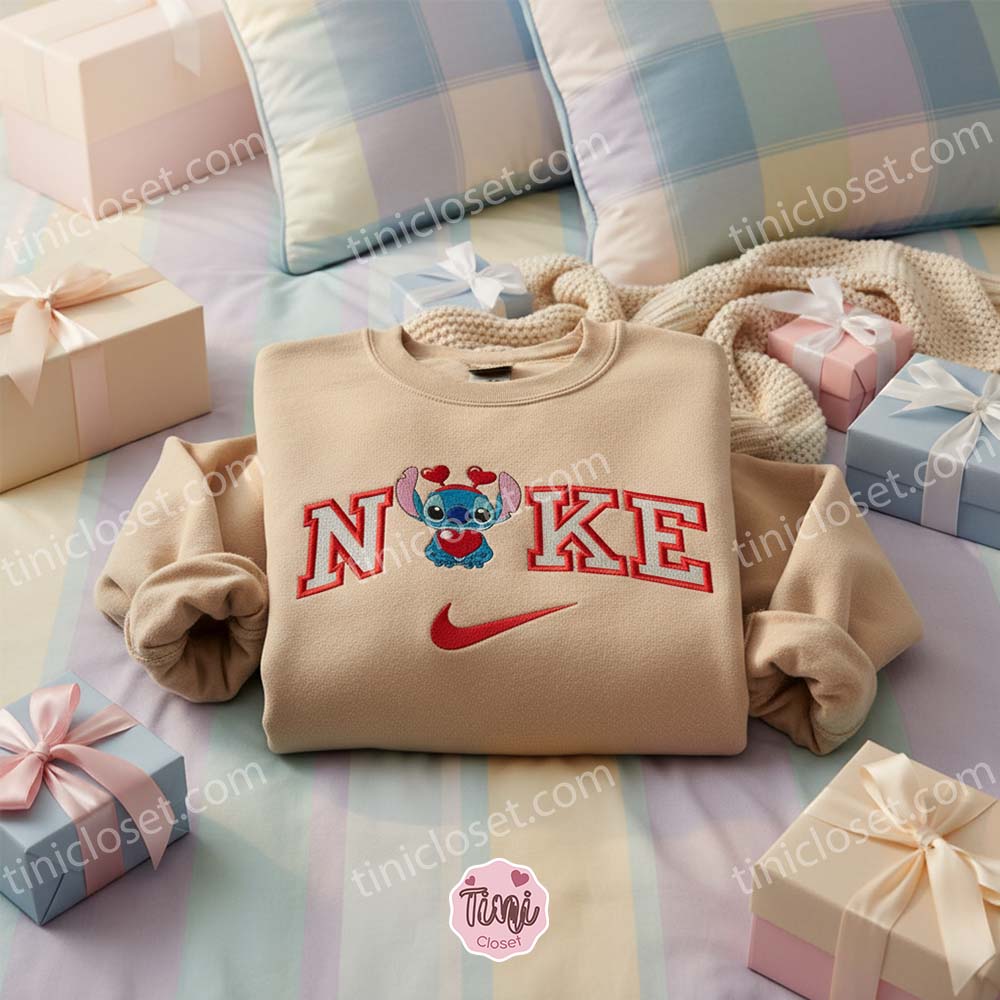 Vibrant Threads: We use the deepest “Valentine Red” or “Candy Pink” threads for the heart, contrasting perfectly with the iconic “Stitch Blue.” These high-tensile threads are color-fast, ensuring the colors remain as bright as your love, wash after wash.