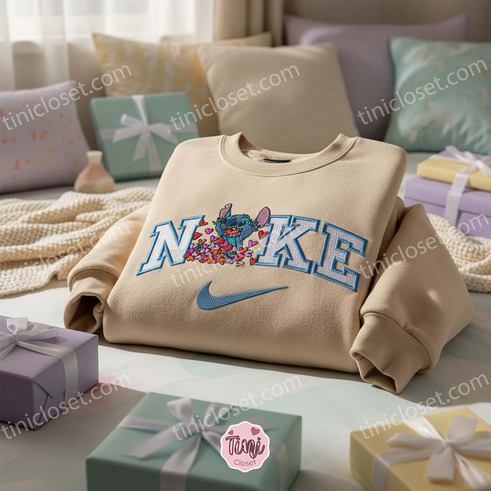 We have captured the moment Experiment 626 discovered the true meaning of affection. This isn’t just a hoodie; it’s an avalanche of cuteness. Featuring Stitch happily sitting amidst a chaotic, colorful pile of Valentine’s hearts, this Custom Experiment 626 Love Sweatshirt is the ultimate visual representation of “I love you a ton.” It is designed for the fan who believes there is no such thing as “too much” love (or too much Disney).