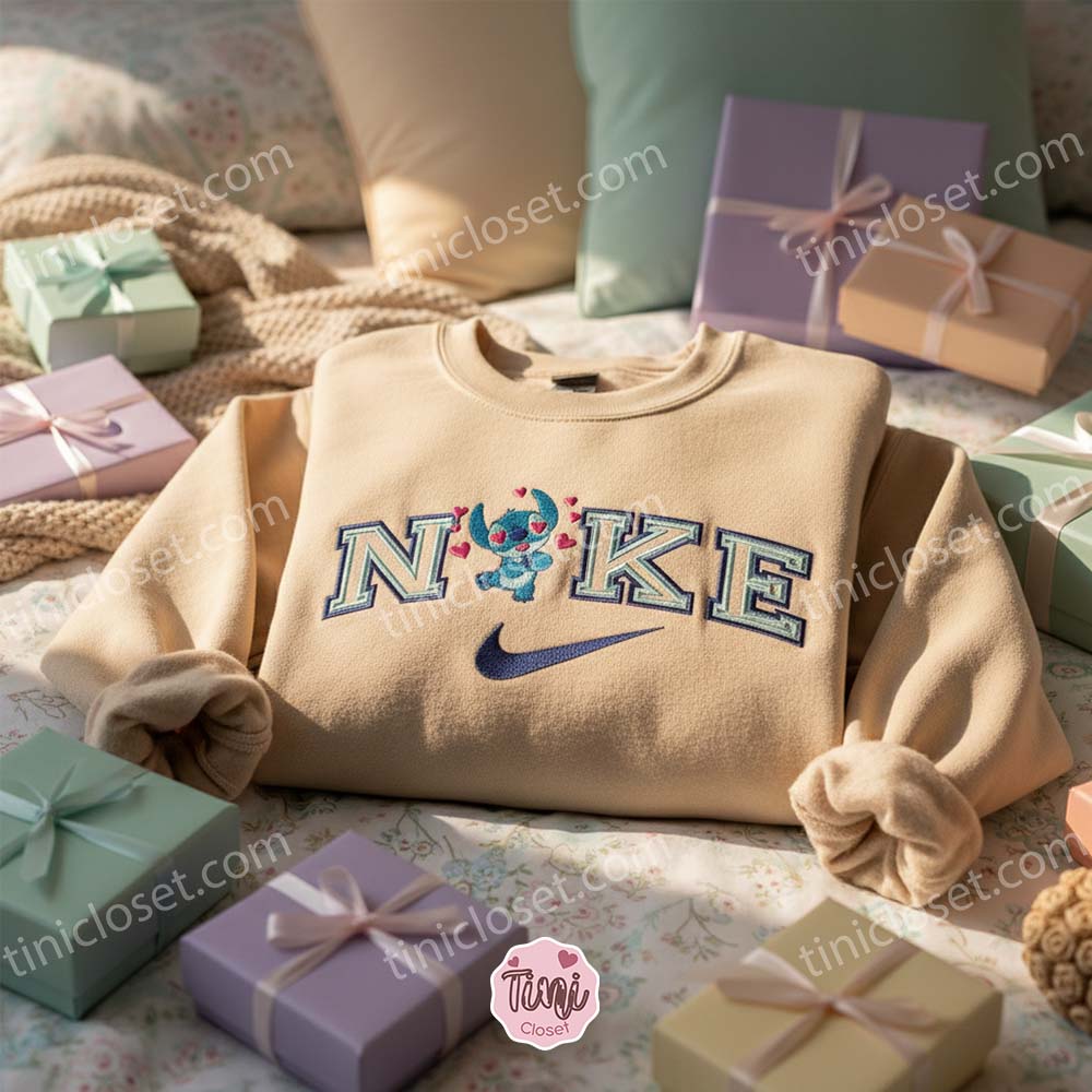 1. A Palette of Custom Color Options: At Tinicloset, we know your love story isn’t “one size fits all.” You aren’t limited to a basic white or black top! Because we offer our premium sweatshirts and hoodies in a massive variety of vibrant garment colors, you can perfectly customize your look. Choose a romantic pastel pink, a classic “Stitch Blue,” or a deep charcoal grey to make the embroidery pop.