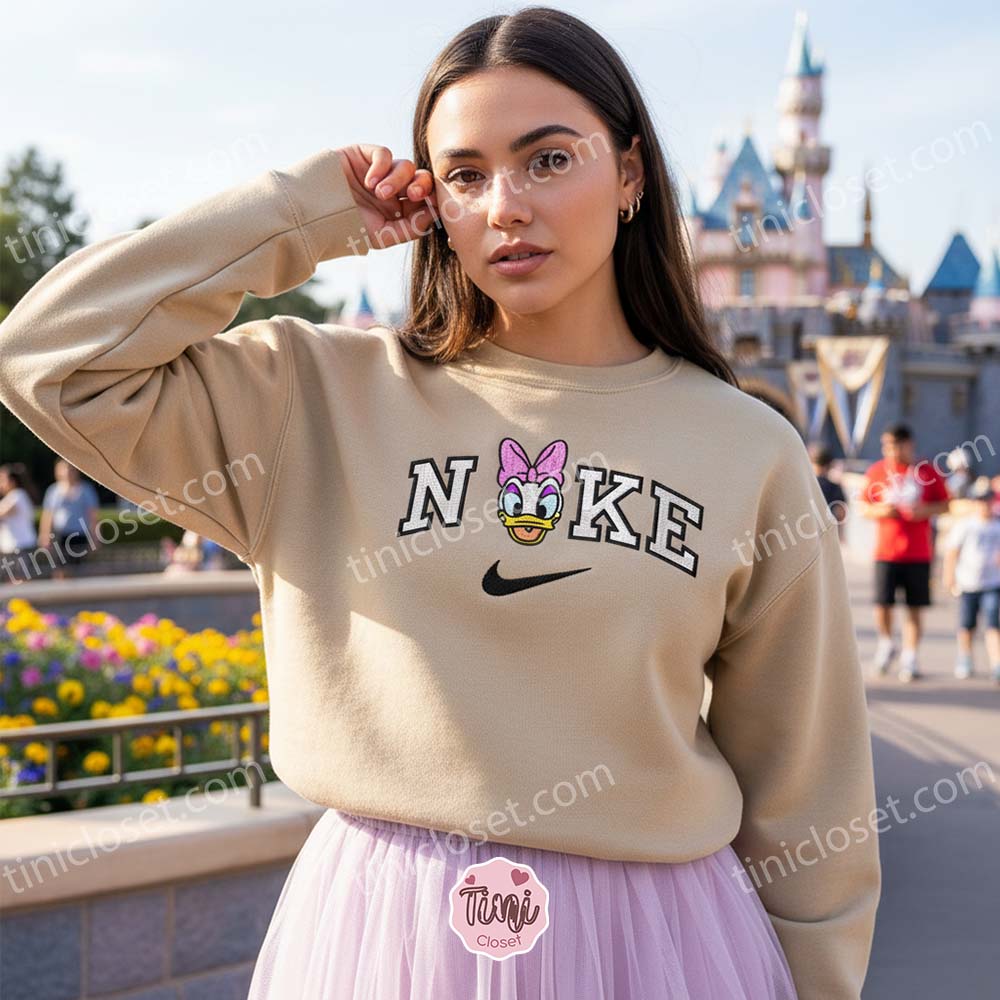 In the fast-paced world of American streetwear, the most captivating designs are those that harmonize the innocent joy of childhood with the sophisticated allure of modern fashion. At Tinicloset, we are leading this aesthetic revolution with the Vintage Daisy Duck Embroidered Shirt. This isn’t just a basic piece of character merchandise; it is a premium piece of Disney Character Apparel for Fans designed for the fashion-forward individual who values the sassy, confident charm of Daisy Duck but demands a sharp, “retro Nike style” finish.