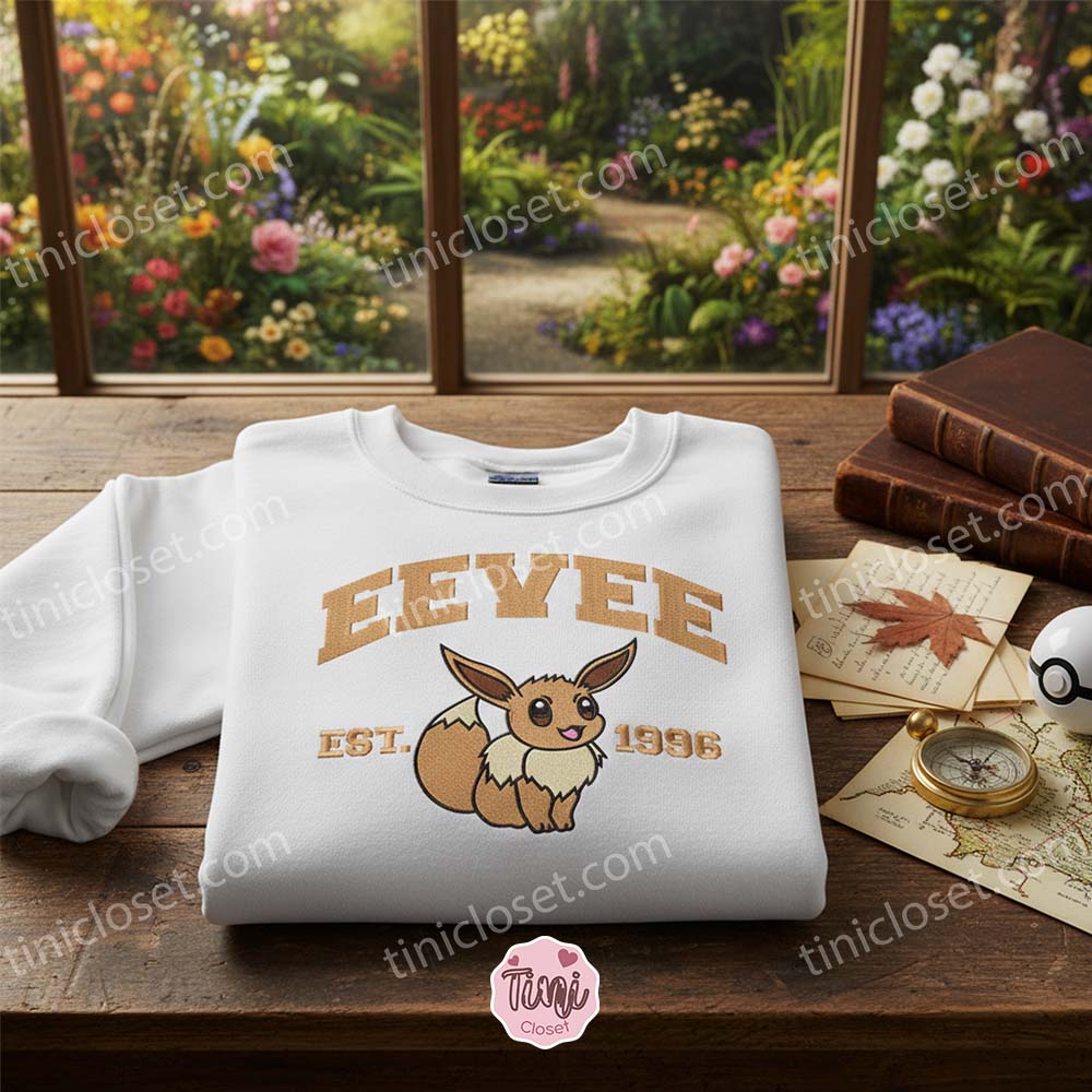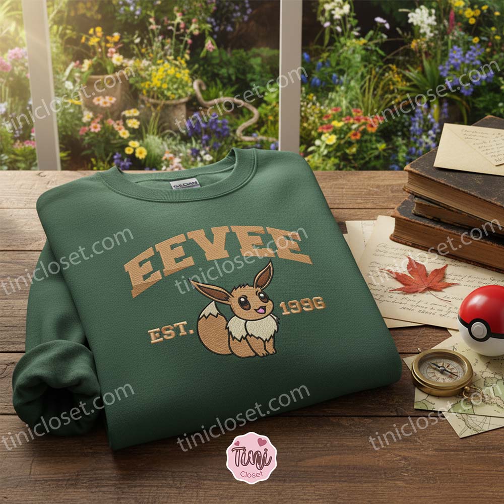 The design highlights Eevee in a classic pose with “Est. 1996” varsity-style lettering, paying homage to the year the Pokémon world began. Whether you are looking for the ultimate Cozy Gift for Girlfriend, a unique anniversary surprise, or just treating yourself to some premium anime merch, this sweatshirt is a wardrobe essential.