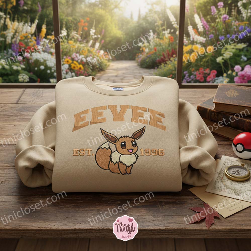 Vintage Eevee Pokemon Embroidered Sweatshirt, Est. 1996 Anime Crewneck, Cozy Gifts For Girlfriend