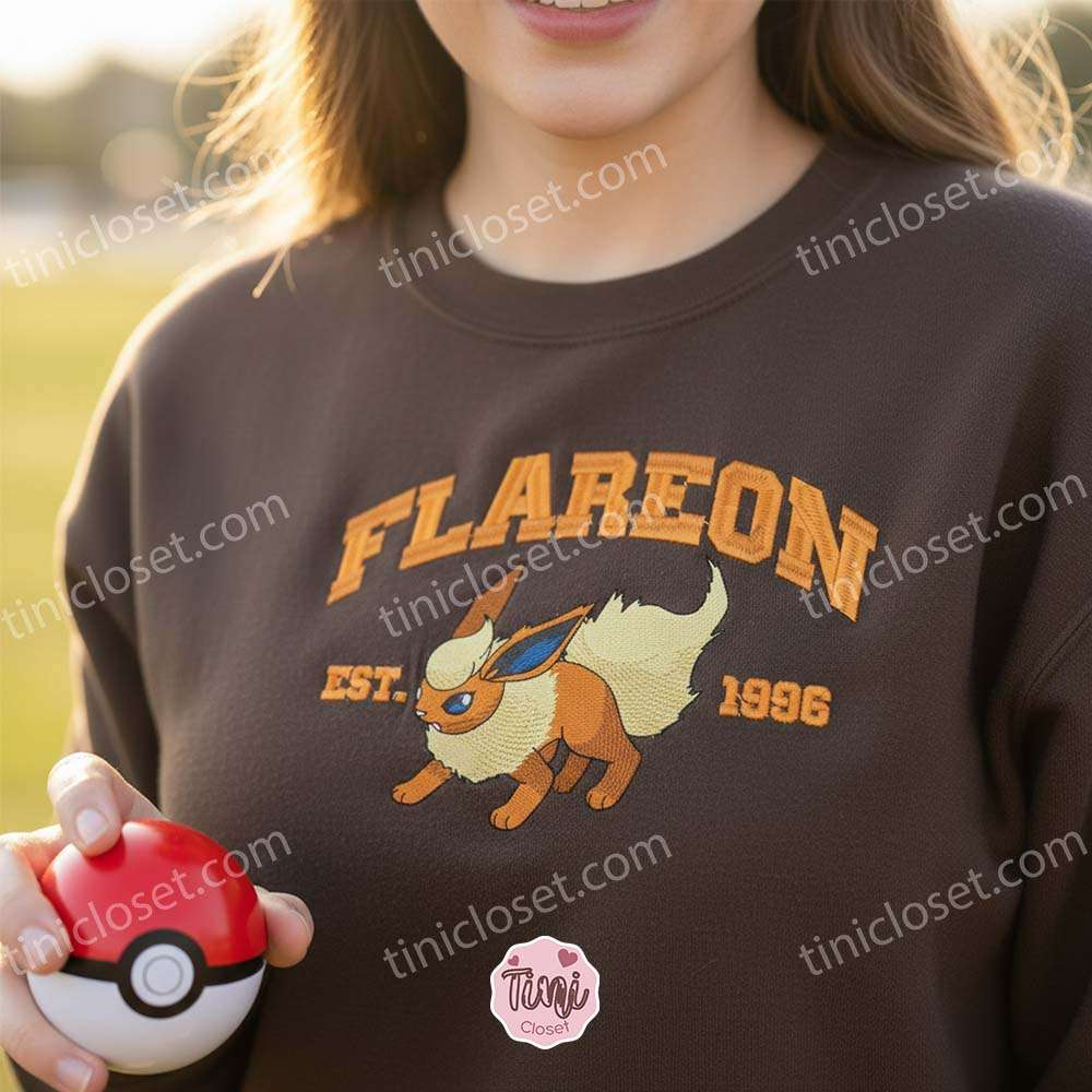 Vintage Flareon Embroidered Sweatshirt, Est 1996 Pokemon Eeveelution Crewneck, Long Distance Relationship Gifts