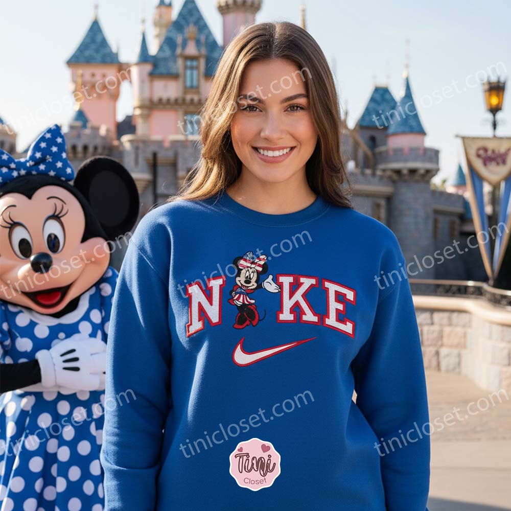 Minnie Mouse has always been a fashion icon, and this Vintage Minnie USA Embroidered Crewneck channels her classic charm. The “vintage” look is dominating US fashion trends right now, moving away from loud, busy graphics toward cleaner, embroidered designs that feel like a thrift store gem.