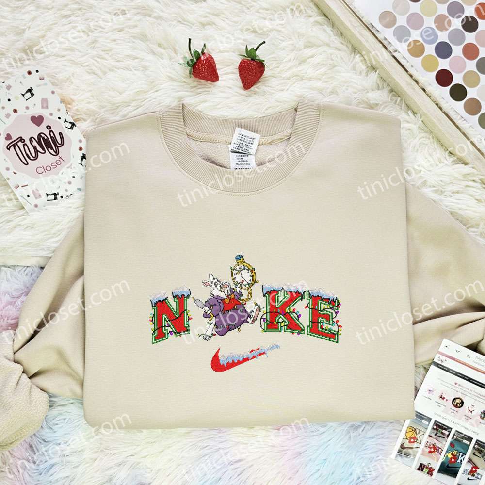 White Rabbit Embroidered Shirt, Disney Alice In Wonderland Characters Embroidered Hoodie, Best Christmas Gift