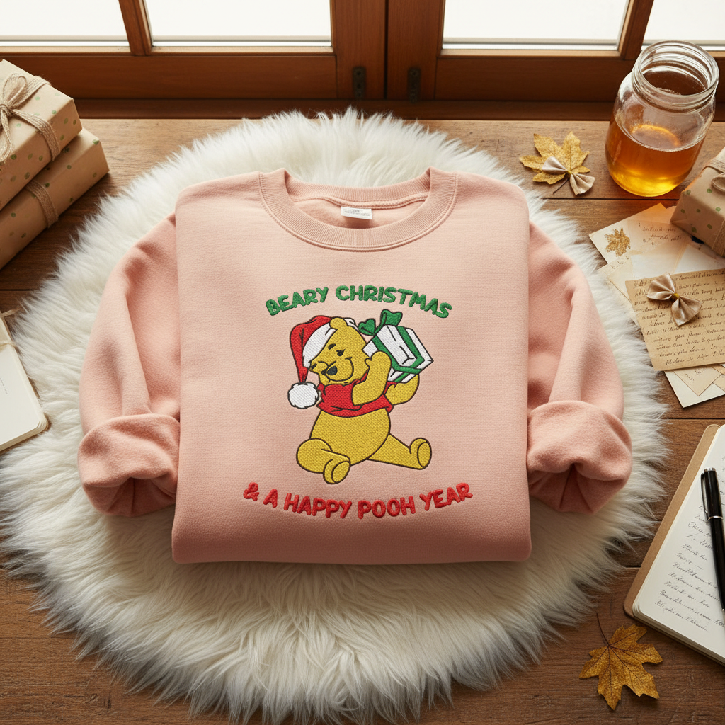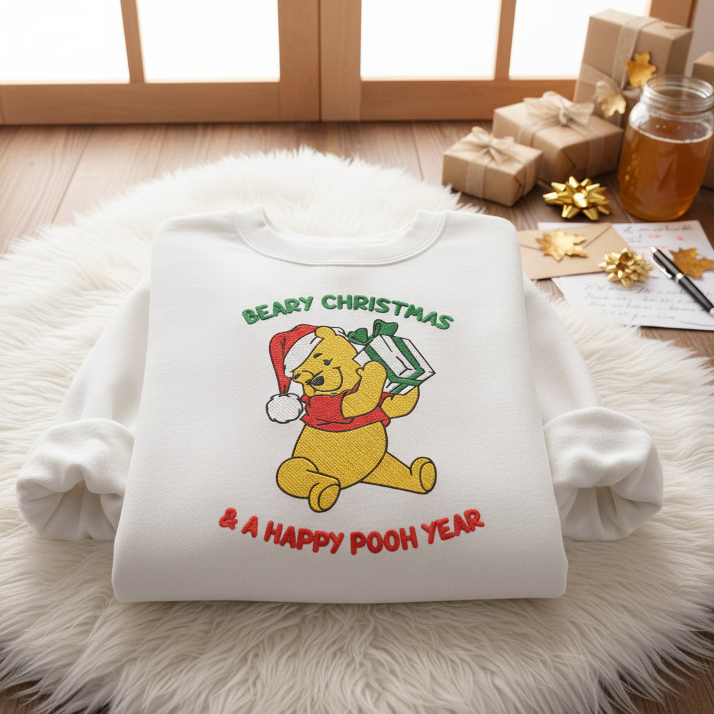 Winnie the Pooh Beary Christmas Embroidered Sweatshirt | Disney Crewneck and Shirt