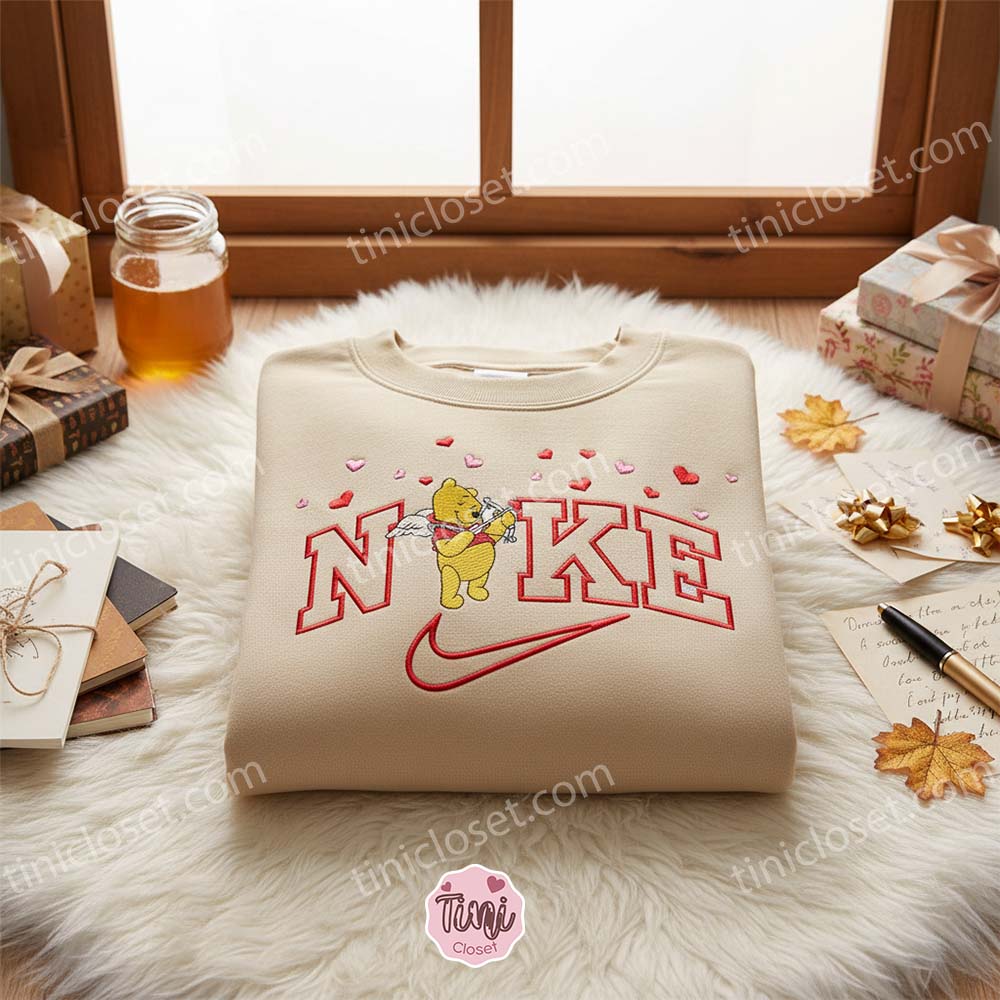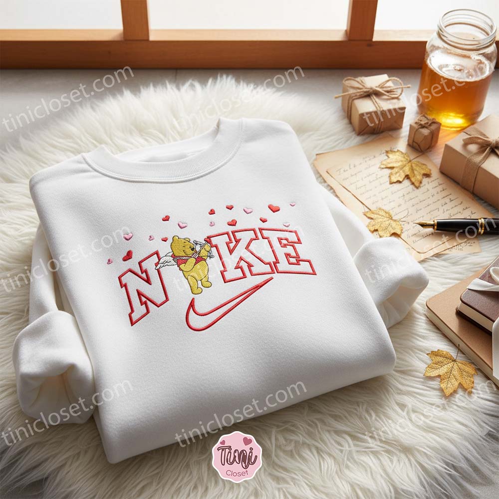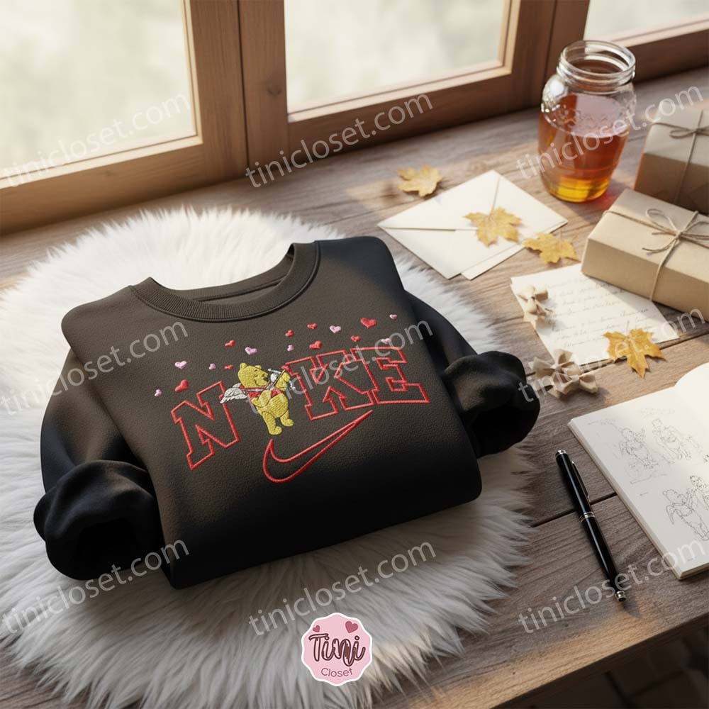 Winnie The Pooh Cupid Embroidered Shirt, Disney Embroidered Sweatshirt, Cartoon Embroidered Hoodie