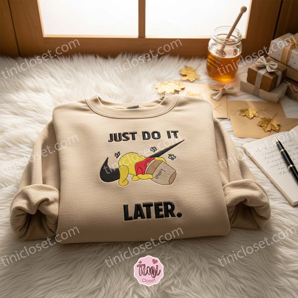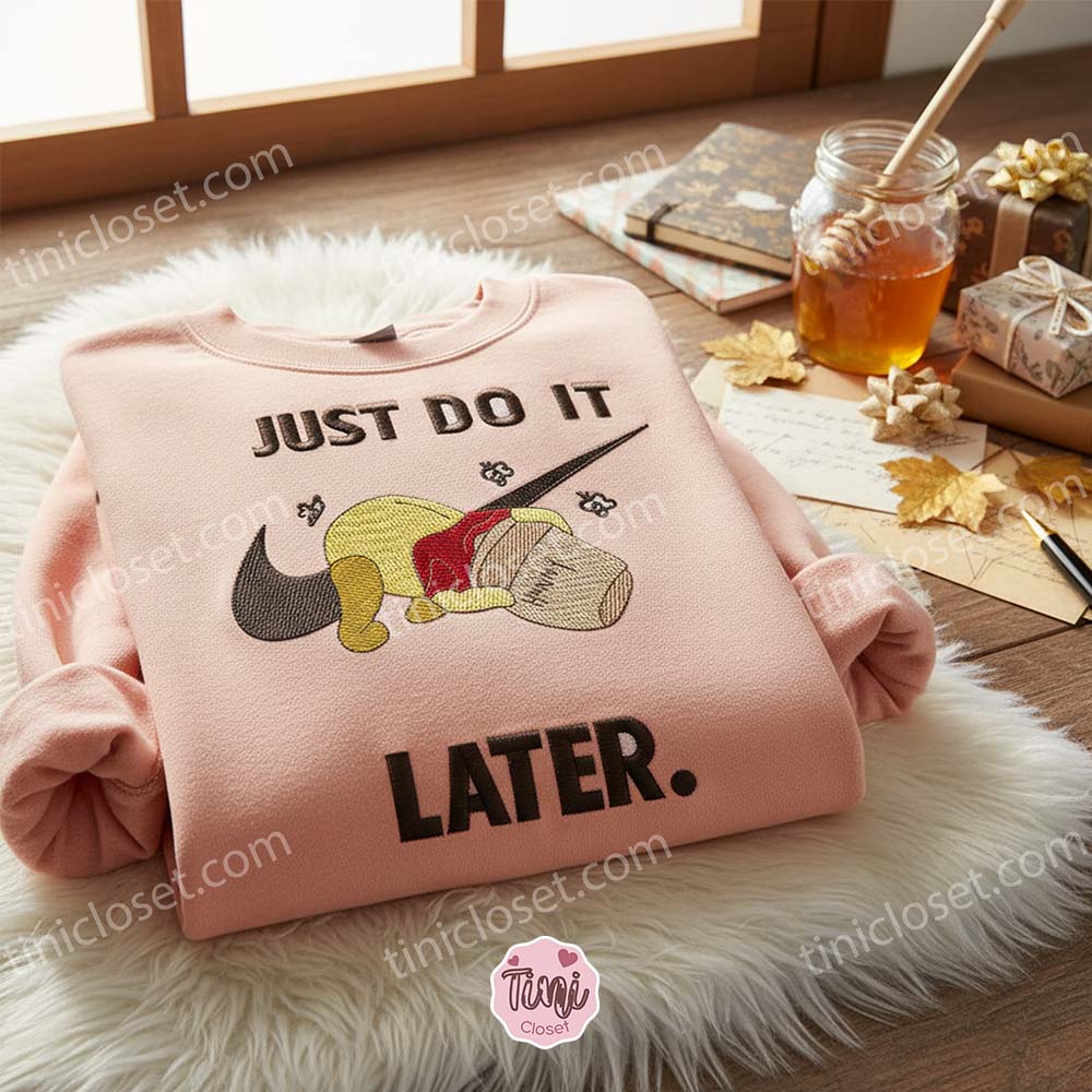 Winnie the Pooh Just Do It Later Embroidered Sweatshirt | Funny Disney Hoodie